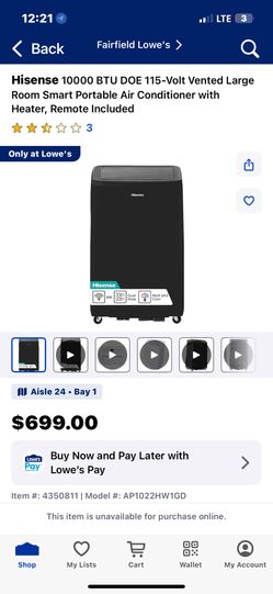 Hisense 10000 BTU DOE 115 Volt Vented Large Room Smart Portable Air Conditioner With Heater Remote Included$350Fairfield, CA