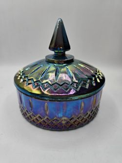 Vintage Indiana Glass Princess Blue Carnival Glass Candy Dish With Lid$42Pinehurst, NC