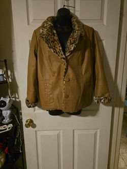 Vintage Terri Lewis Classic Luxuries Leather Coat With Faux Leopard Lining$40Phoenix, AZ