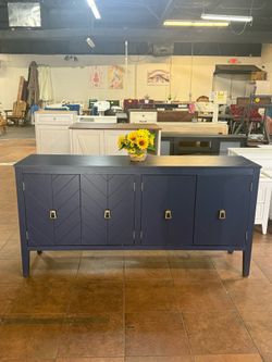 63" 4 Door Sideboard Cabinet with Geometric Line Patterns, Storage Buffet with Vintage Metal Handles for Living Rooms(Navy Blue) 💰189$$189Decatur, GA