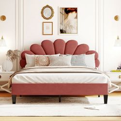 🔥Brand new in Box 🔥Queen Size Upholstered Platform Bed with Flower Pattern Velvet Headboard(Bean Paste Red) 💰180$$180Decatur, GA
