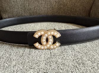 Resin Pearl Buckle Black Thin Leather Belt $55Centennial, CO