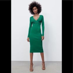 Zara Green Knit Ribbed Midi Dress Women’s Small V Neck Sweater Dress $25Phoenix, AZ