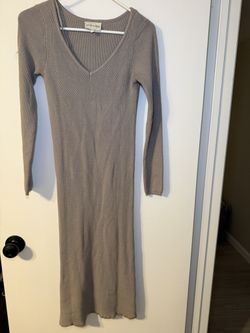 Elegant Taupe Knit Dress V-Neck Ribbed Grey Women’s Small$15Phoenix, AZ