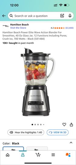Hamilton Beach Power Elite Wave Action Blender For Smoothies, 40 Oz Glass Jar, 12 Functions Including Puree, Crush Ice, 700 Watts - Black (58148A)$13Los Angeles, CA