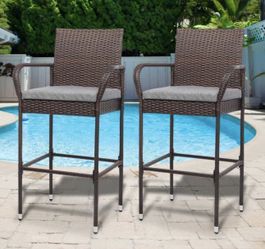 VINGLI Brown Wicker Outdoor Bar Stool with Cushions (2-Pack)$100Lake Elsinore, CA