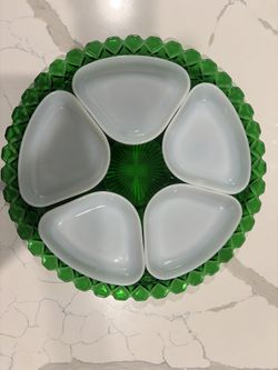 Snack and Dip Glass Plate( Green/white)$14Bedford Park, IL