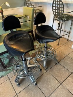 A set of vintage seats, Harley Davidson, motorcycle saddle, seat, and chrome with rolling rolling wheels$475Austin, TX