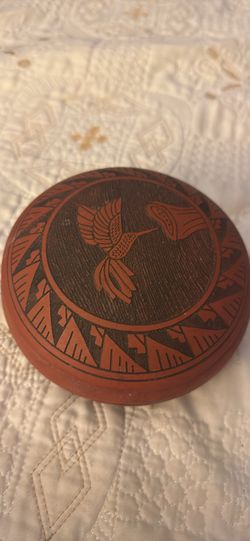 T . C Dinch hummingbird American Western decor bowl and lid signed$175Austin, TX