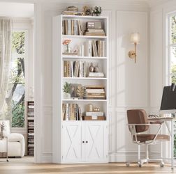 Hiphuta 81.5" Tall Bookcase with Doors, 5-Tier Bookshelves with Storage, 23.6"W Display Shelf with 2 Doors for Home Office, Living Room, White$160Monrovia, CA