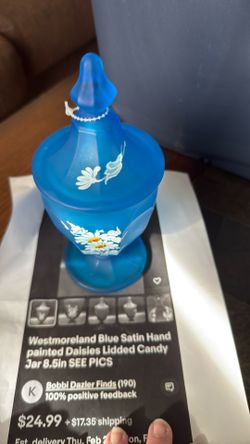 Westmoreland Blue satin hand Painted daises lidded candy Jar 8.5in$25Federal Way, WA