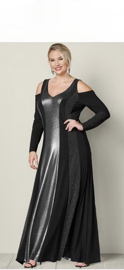 Venus cold shoulder black metallic fit and flare maxi dress long sleeve size L$19El Monte, CA