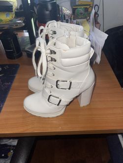 White heeled ankle boots in women’s 8$15San Diego, CA