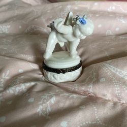 Vintage Porcelain Angel Cherub Trinket Box Flowers Hinged Lid Ganz White$13Stockton, CA