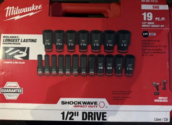 Milwaukee SHOCKWAVE 1/2 in. Drive SAE 6 Point Impact Socket Set (19-Piece)$100Fremont, CA