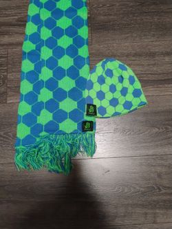 Five LO Soccer Ball Pattern Beanie And Scarf With Seattle Sounders Colors$15Seattle, WA