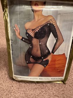 New one size black fishnet rhinestone mini Bodycon dress lingerie sheer shor$15Upland, CA