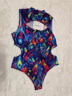 New 1x cosmic blue tye dye festival rave bodysuit top outfit cyber raver boho $50Upland, CA