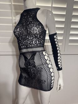 New One Size Black -fishnet Butterfly Mini Dress Arm Warmers Festival Rave Lingerie $15Upland, CA