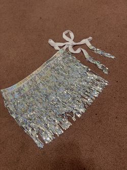 New silver sequin fringe wrap mini skirt festival rave dance metallic$15Upland, CA