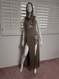 new large long tan hood apocalypse alt cyber goth dress festival rave slits gothic $50Upland, CA