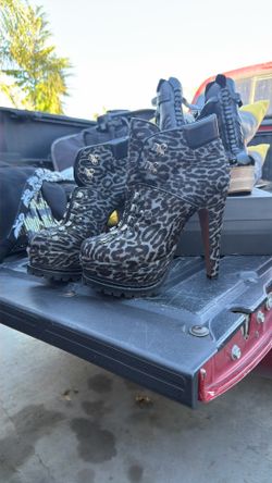 Alain black Grey Pony hair leopard platform Boots$250Menifee, CA