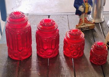 Vintage Moon And Stars 4pc Ruby Red Glass Jars $140Glendale, AZ