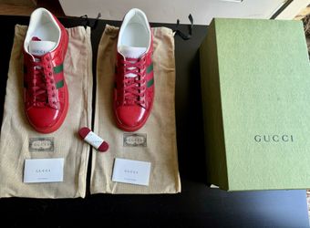 Authentic Brand New Welsh Red Gucci Sneakers with original box, dust bag, spare laces included.$450Charlotte, NC
