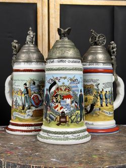 Antique German Reservist Beer Steins Lot of 3 Bavarian Infantry Artillery Aviation Munich Lithophane$900Oakland, FL