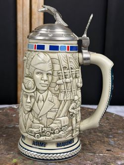Avon Tribute to the American Armed Forces Beer Stein 1990 Ceramarte Pewter Lid Eagle$25Oakland, FL