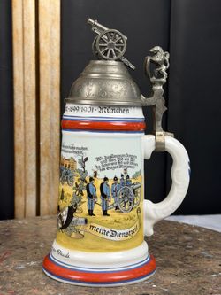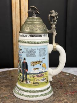 Antique German Military Reservist Beer Stein Artillery Regiment Munich 1(contact info removed) Lithophane Pewter Lid$450Oakland, FL