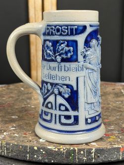 Vintage German Stoneware Beer Stein Prosit Hunting Scene Blue Relief Mug 6.5in$15Oakland, FL