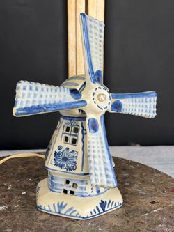 Vintage Delft Blue Dutch Windmill Lamp Ceramic Holland Style Light 11in$40Oakland, FL