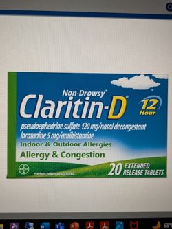 Claritin D 12 Hour, 20 Count$25Hialeah, FL