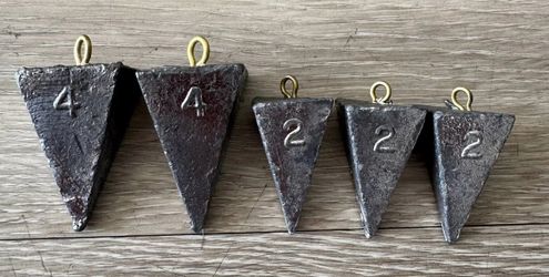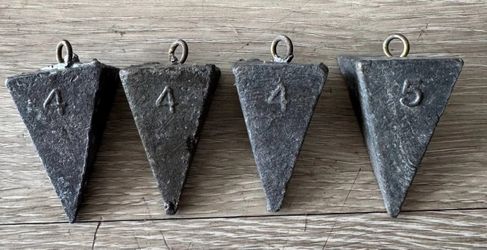 Lot of 4 Fishing Sinkers 4 oz Triangle Bank Weights Lead Sinkers$10Halndle Bch, FL