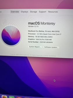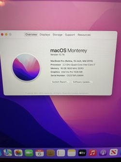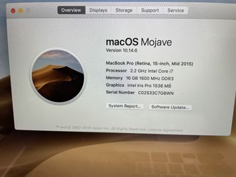 (#14) Apple MacBook Pro 15” "Core i7" 2.2 15" Mid-2015 16 RAM, 250 GB$80Bradenton, FL