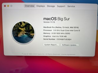 (#6) Apple 13” MacBook Pro "Core i5" 2.6 Mid-2014 8 RAM, 128 GB$80Bradenton, FL