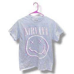 Nirvana Light Blue Distressed Women’s T-Shirt with Purple & White Graphic Design | Size Medium$15Los Angeles, CA