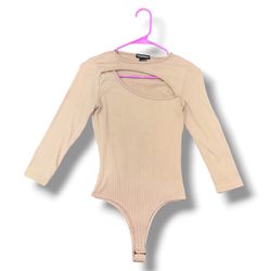 Wearever Beige Ribbed Bodysuit with Neckline Cutout Long Sleeve$17Los Angeles, CA