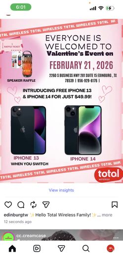 π¨π₯ HOT DEAL π₯π¨Get the iPhone 14 for just $99.99 when you switch to Total Wireless today! π₯π±Hurryβlimited time only β³ π San Juan: 1708 N Raul Lo$0Edinburg, TX