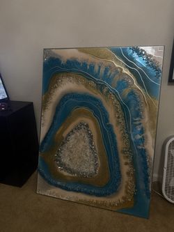 48x36 Large Teal & Gold Geode Resin Art – Crystal Epoxy Wall Decor $220Rancho Cordova, CA
