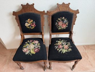Antique Victorian Eastlake-style set of 2 side chair with a needlepoint seat and back$199Palm Springs, CA