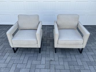 Pair of Modern Beige Fabric Accent Chairs with Black Metal Base$180Vlg Wellingtn, FL