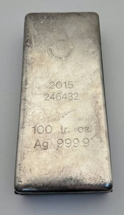 100 Troy Ounce 2015 Royal Canadian Mint 999.9 Silver Bar$12,000Pompano Beach, FL