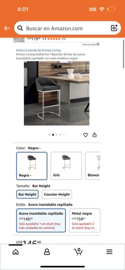 Armen Living Katherine Brushed stainless steel bar stool with black faux leather$55Chino, CA