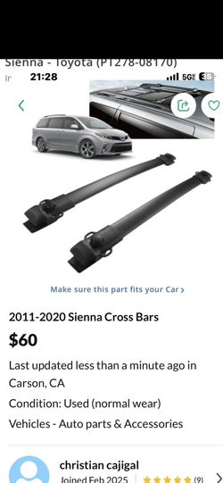 2011-2020 Sienna Cross Bars$60Carson, CA