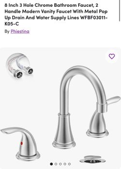8 Inch 3 Hole Chrome Bathroom Faucet, 2 Handle Modern Vanity Faucet With Metal Pop Up Drain And Water Supply Lines$25Chicago, IL
