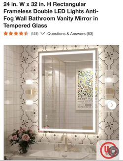24 in. W × 32 in. H Rectangular Frameless Double LED Lights Anti-Fog Wall Bathroom Vanity Mirror in Tempered Glass$120Chicago, IL