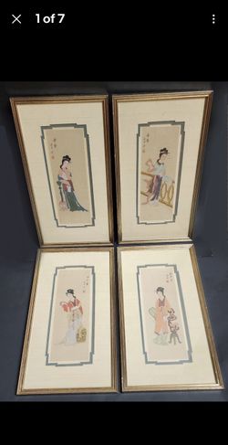 4 Vtg Asian Silk Watercolor Paintings - Original Signed 8.5" x 15.5" Framed $50Port St. Lucie, FL