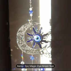 Buy1get1 Evil Eye Moon Sun Crystal Suncatcher Hanging Ornament for Home Window Garden Decoration, Glass Material$15North Chesterfield, VA